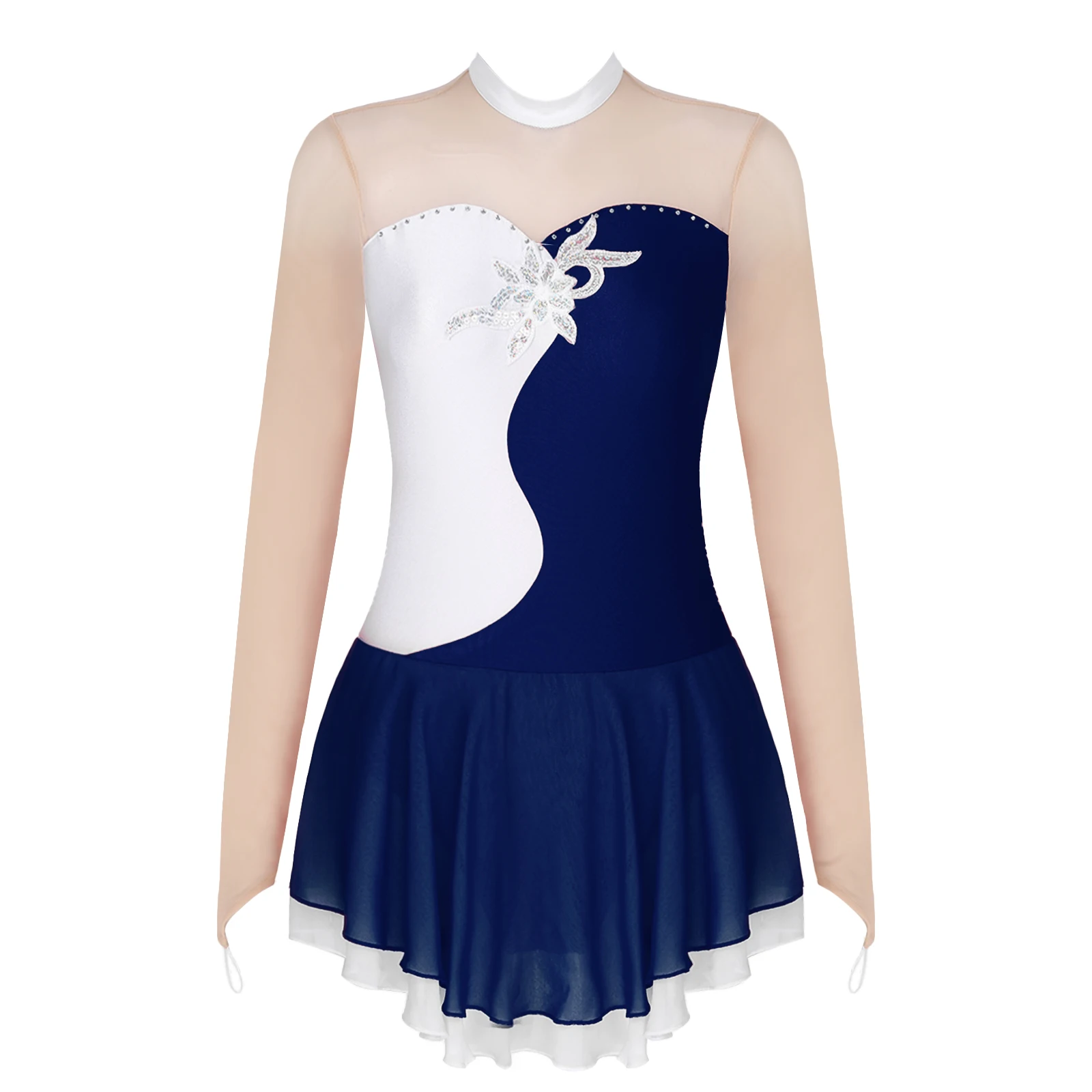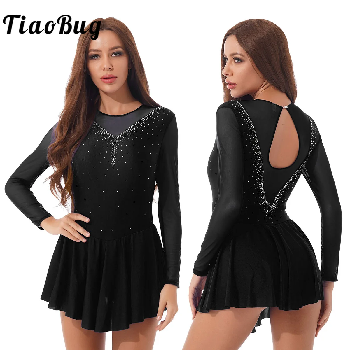 Особенности:Женские блестящие, со стразами платье для танцев Прозрачное нижнее белье Из Сетчатой Ткани в стиле пэчворк Фигурное катание костюм для домашних животных.Изготовлено из мягкой ткани, дышащей, приятной для кожи, удобной на ощупь и в носке, позволяет вам чувствовать себя хорошо.Прозрачное нижнее белье из сетчатой ткани в стиле пэчворк, блестящие стразы, Замочная скважина дизайн на спине.Купальник с круглым вырезом и длинными рукавами, украшенный юбкой с рюшами, сочетается с танцевальным платьем.Подходит для выступлений на сцене, гимнастики, фигурного катания, соревнований по танцам, занятий танцами и т. д.
