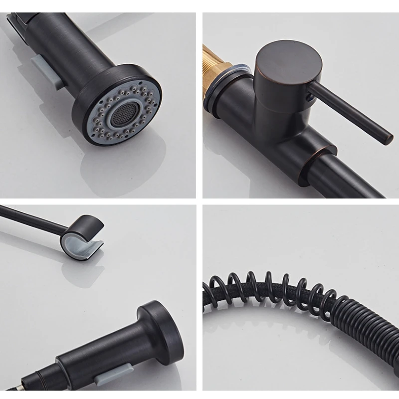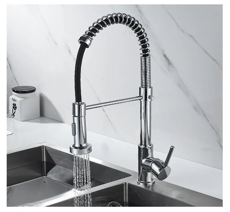 Выдвижной кухонный кран на пружине, выдвижной распылитель на 360 градусов, латунный кран, черные смесители для раковины, смеситель для кухни 2 в 1