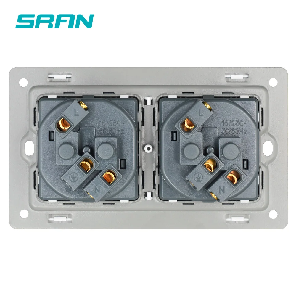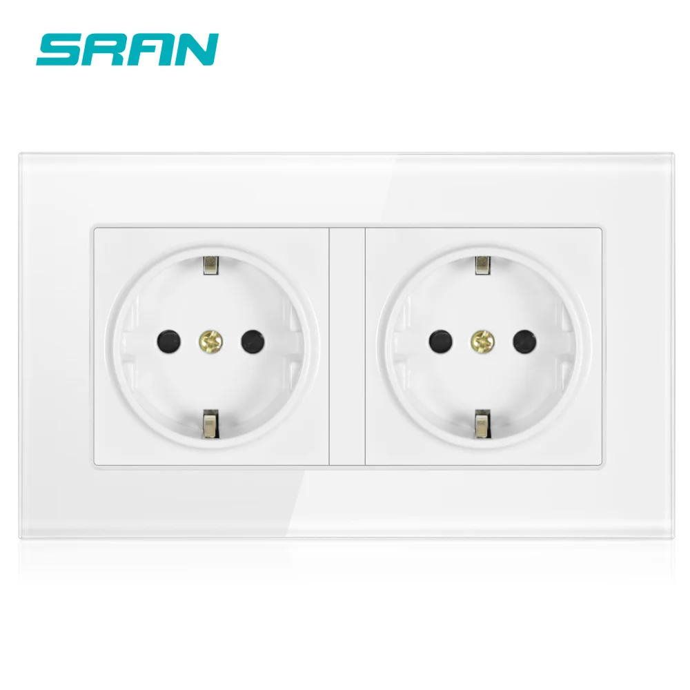 Штепсельная Вилка европейского стандарта, заземленная 16А, многоходовая электрическая розетка, двойная полоса, стеклянная панель со стразами 146*86, серый/серый