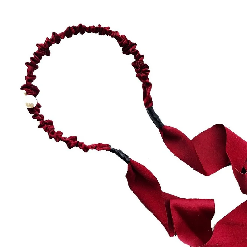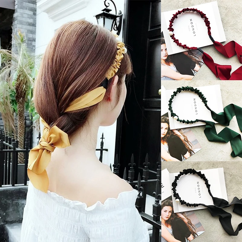 Модные Длинные ленты, плиссированные повязки, однотонный галстук, хвост, бант, жемчужные повязки для волос для женщин и девочек, ободок, обручи для волос, аксессуары для волос