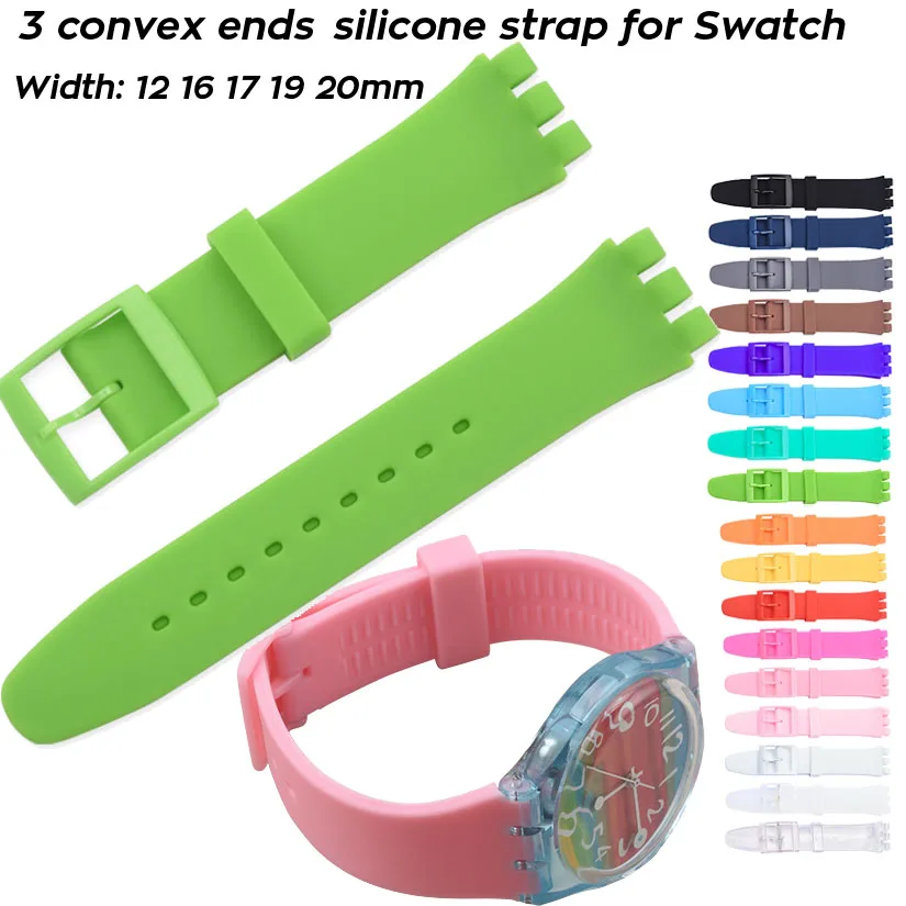 Ремешок силиконовый сменный для часов Swatch, резиновый браслет с 3 выпуклыми концами, 12 мм 16 мм 17 мм 19 мм 20 мм