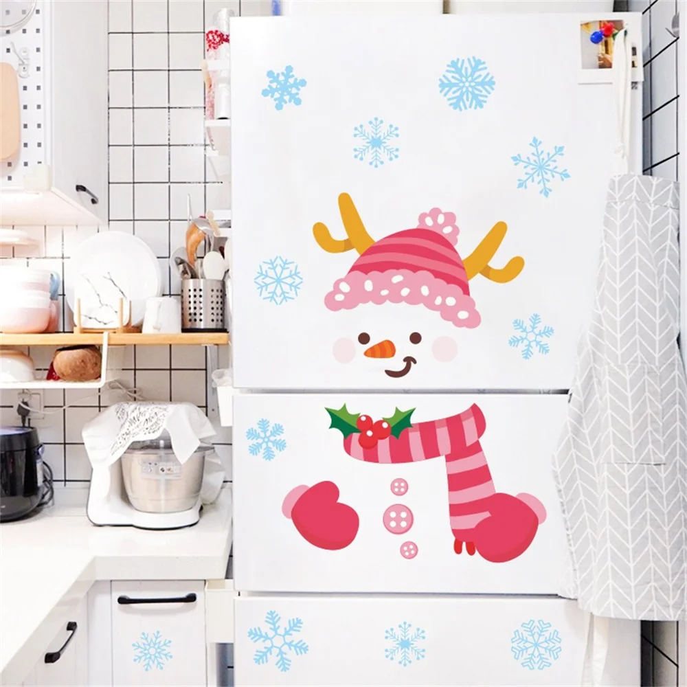 Рождественская Наклейка на окно, наклейки на холодильник со снегови...