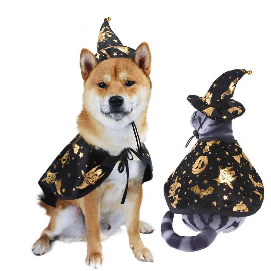Забавный костюм для собак, костюм для домашних животных на Хэллоуин, плащ и Шляпа Волшебника для кошек, собак, праздничная одежда для котят, косплей, товары для домашних животных