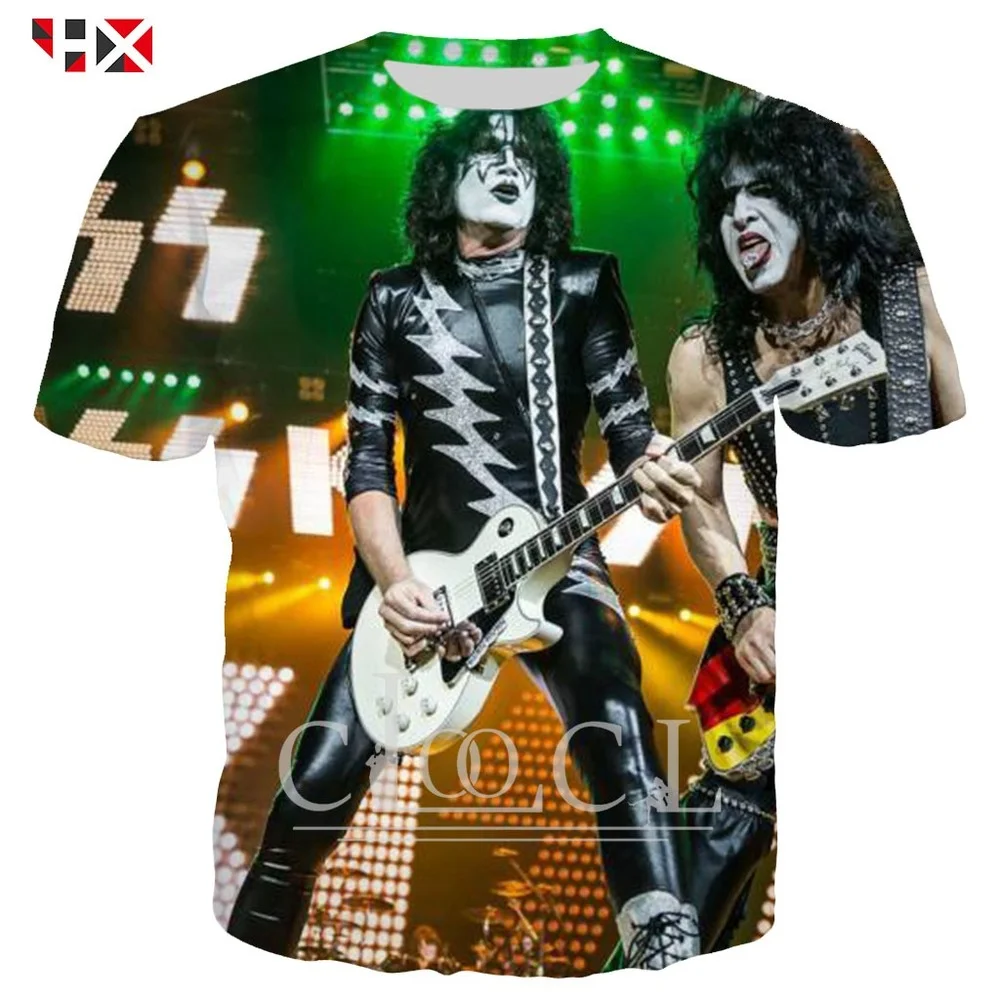 Популярная летняя футболка CLOOCL с металлическим рок-группы KISS, модная мужская одежда в стиле Харадзюку С 3D принтом, модные повседневные топы в стиле Харадзюку для мужчин и женщин
