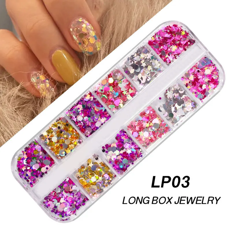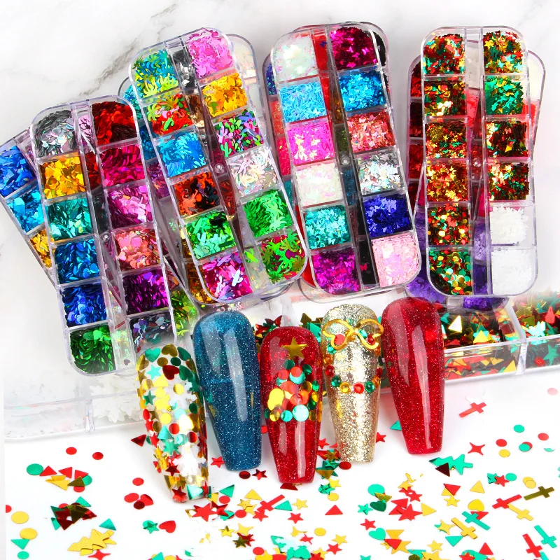 12 шт. в 1 голографический блестящий для ногтей порошок с контейнер...