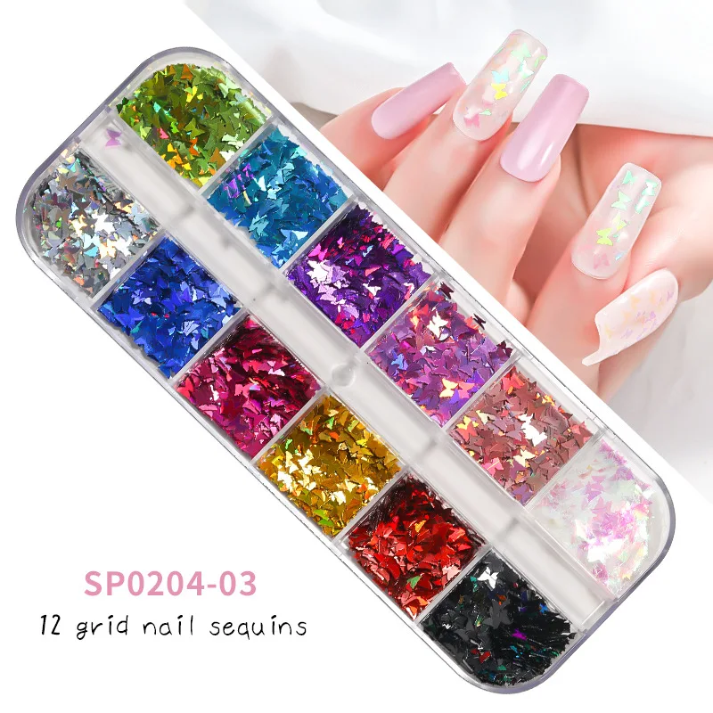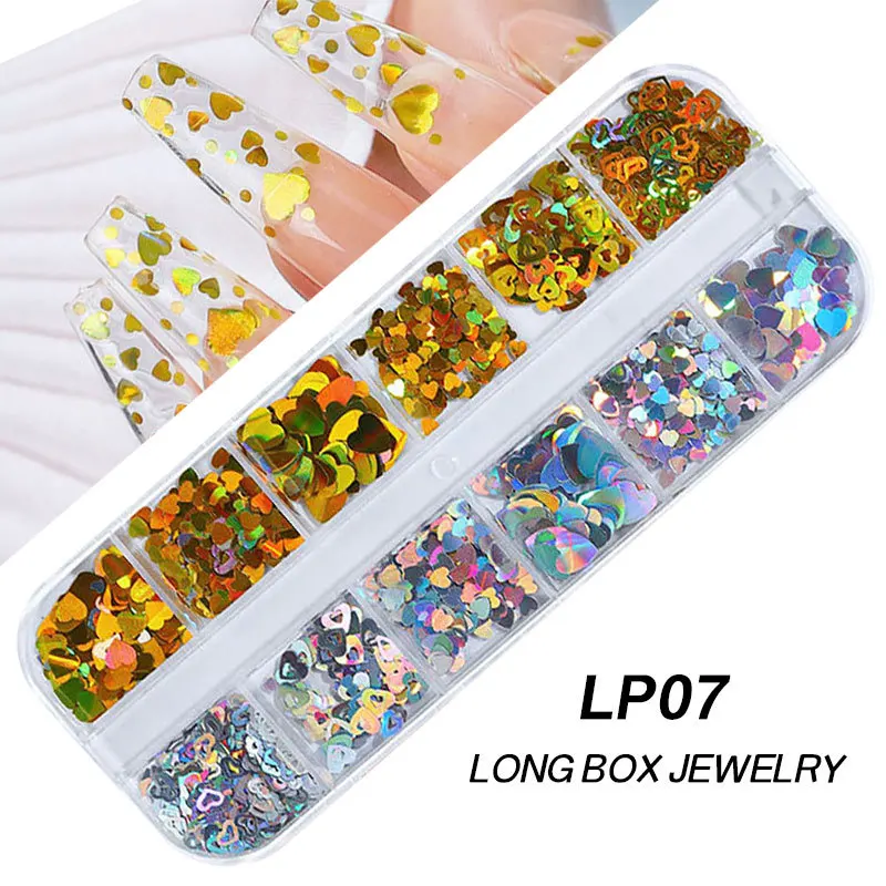 гель для ногтей маникюр втирка для ногтей1 коробка 1 ячеек для ногтей блестящие хлопья пайетка неоновая бабочка любовь сердце нестандартные алюминиевые золотые красные дизайнерские ногти блестки инструмент сделай сам