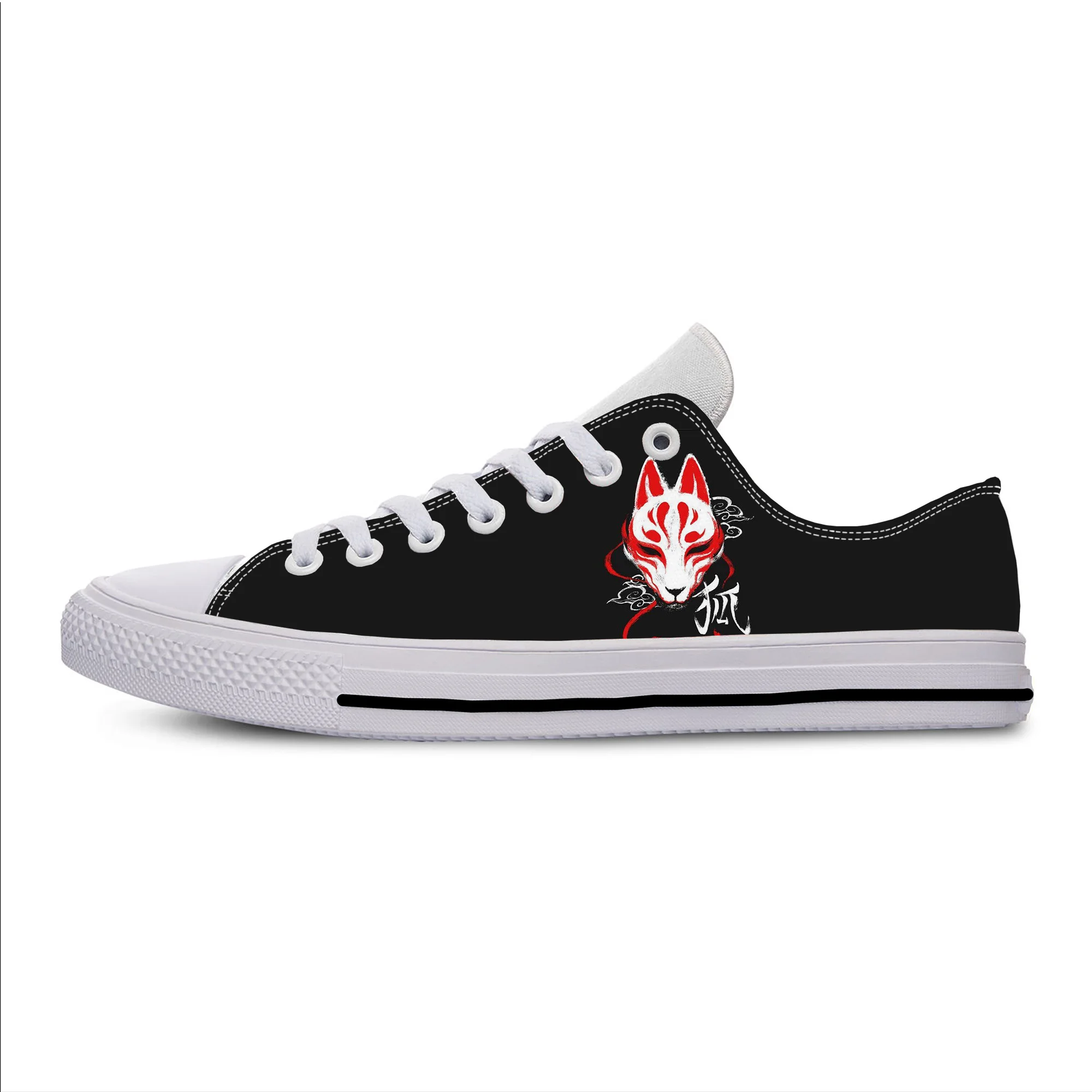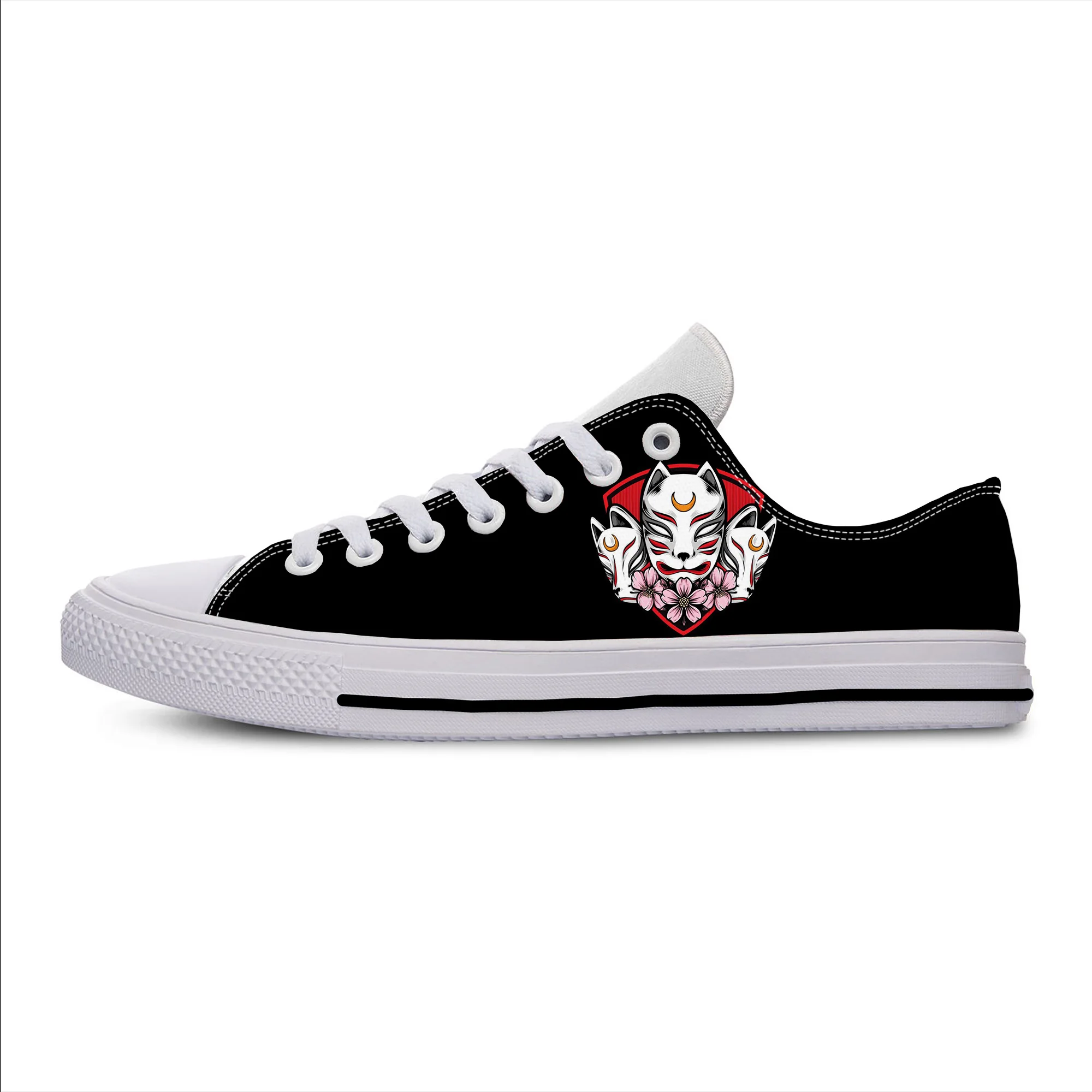 Маска кицунэ японская лиса Аниме Манга Мультфильм крутые повседневные тканевые туфли низкие дышащие легкие 3D печати мужские женские кроссовки