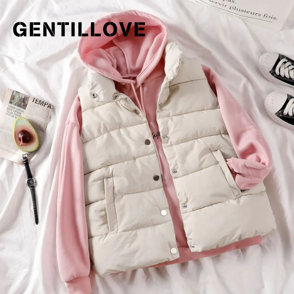 Куртка Gentillove женская зимняя с хлопковой подкладкой, повседневный теплый пуховик в Корейском стиле Харадзюку, без рукавов