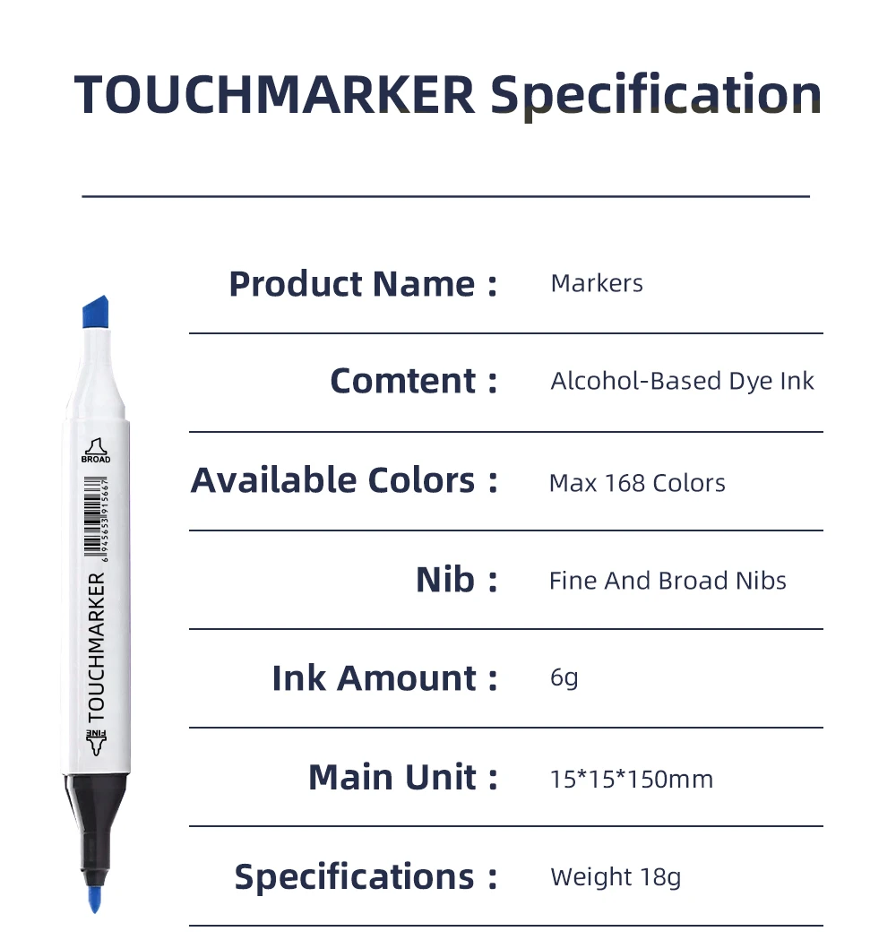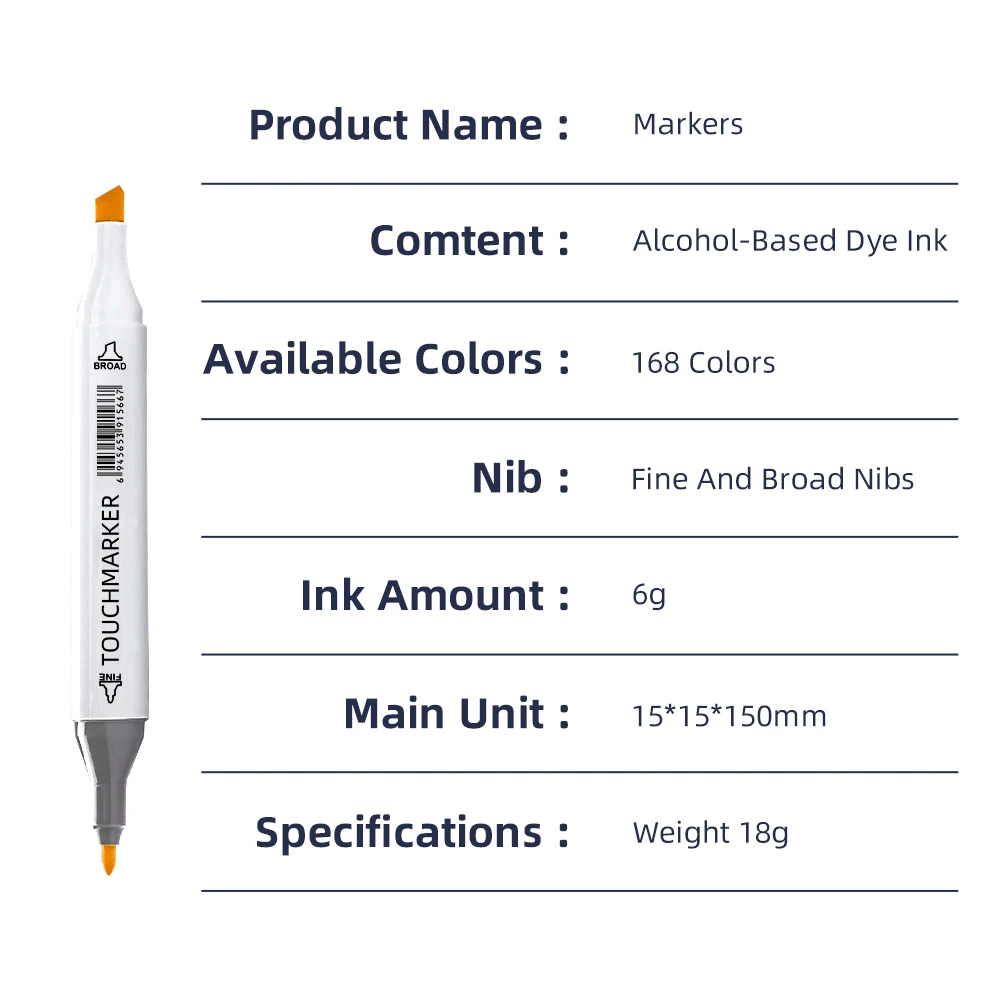 Маркеры TouchFIVE для набросков, 168 спиртовые двусторонние фломаст...