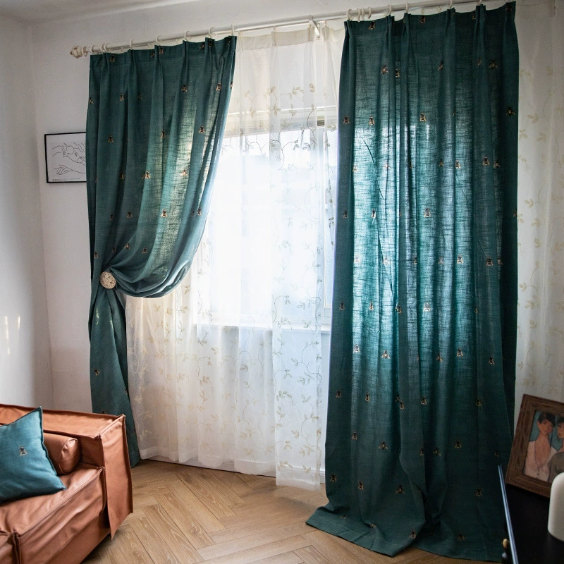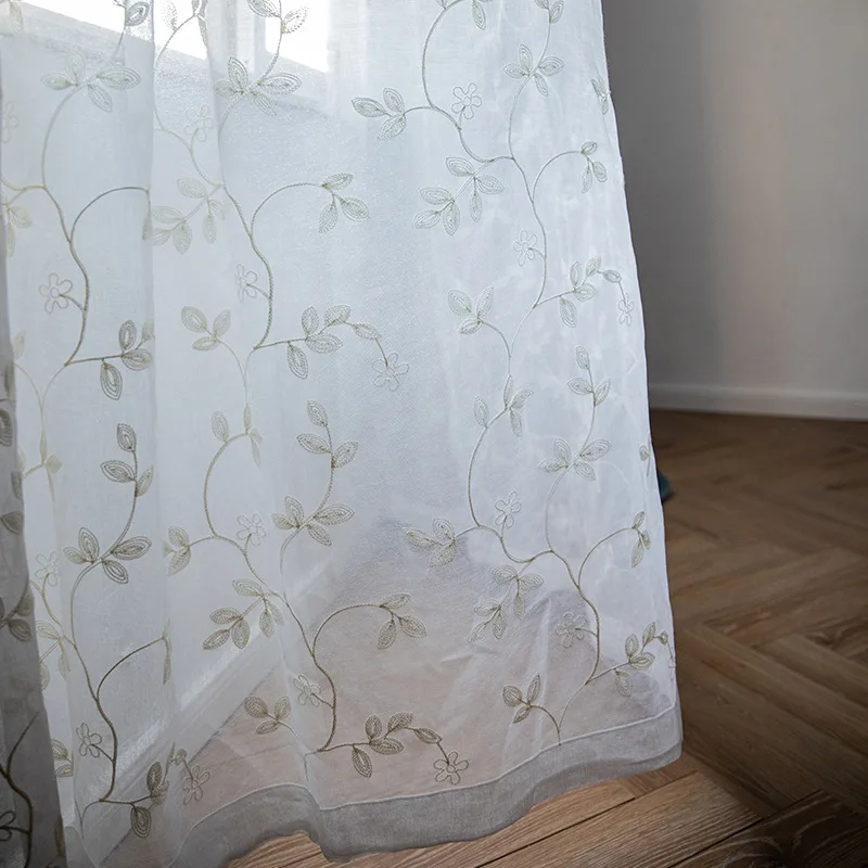 Занавески с вышивкой в виде зеленых листьев, Простые занавески из ч...