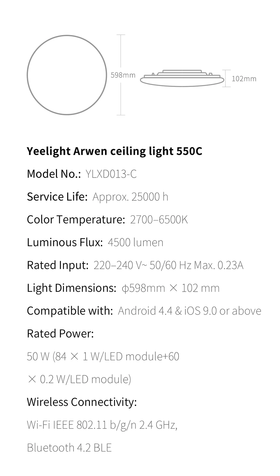 Потолосветильник льник Yee Arwen 550Характеристики изделия: 598 мм X 102 ммСветовой поток: 4500 люмен