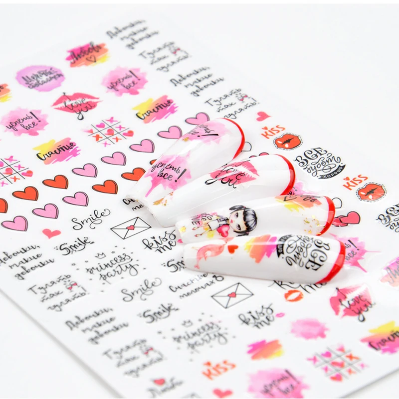 Наклейка для ногтей, объемная фольга с надписью на английском языке