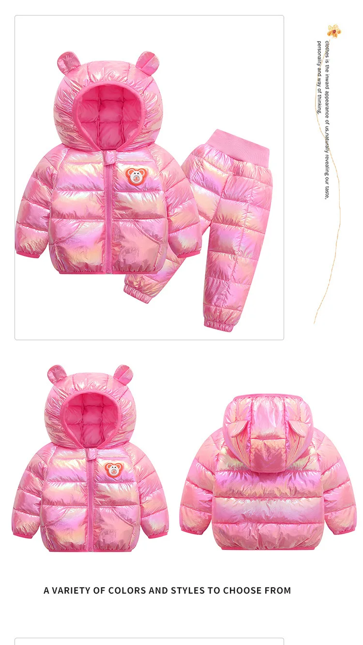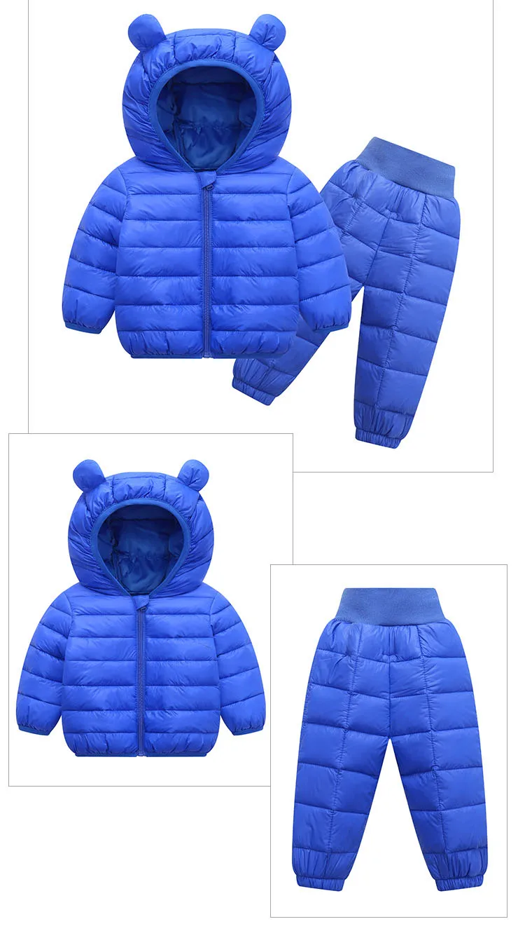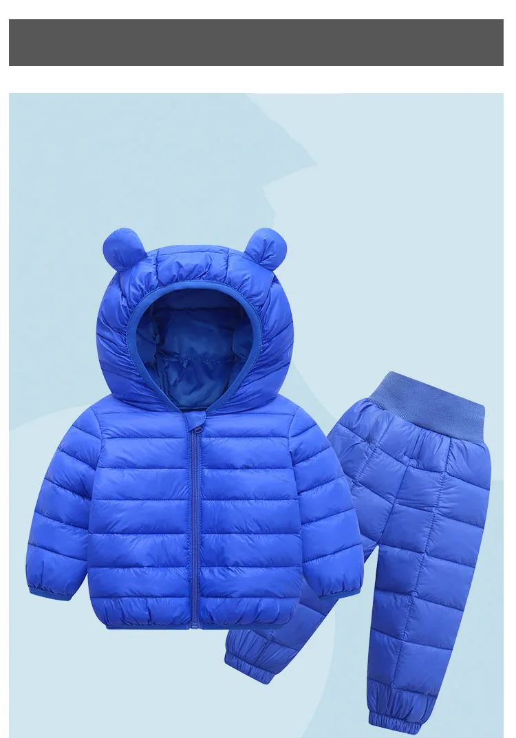 Детский зимний комплект одежды, теплый пуховик с капюшоном для маленьких мальчиков, штаны, одежда для девочек, комбинезон, пальто, лыжный костюм, новинка 2021