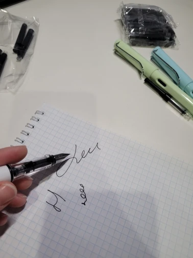 Это потрясающе! Мне нравится! Так стоит своей цены, я думаю, что я одержим. Только что купил как 80 цветных чернильных картриджей, я буду использовать эти ручки без остановок. Письмо гладкое, и оно идеально, если вы хотите залезать в авторучки, но у вас нет денег на инвестирование в причудливые вещи. Этот инженерный ученик доволен :)