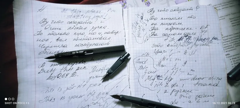 синие чернила- скорее черные, в целом отлично .Ручки хорошие.Есть поршень. Чернила брал у себя в городе 70 см" стоили 1$( радуга 2)