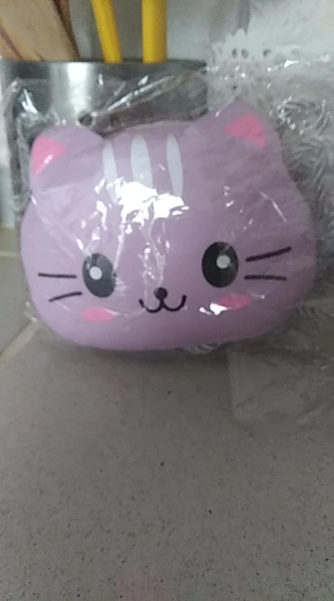 el bolso es igual que en la fotografía... su material es plástico con la carita del gato pintada...la cuerda es suave y corta, la medida perfecta para mi sobrina de 4 años, no se debe poner mucho peso, ya que no creo que resista tanto porque la calidad no es la mejor, pero es acorde al precio. conforme con el producto