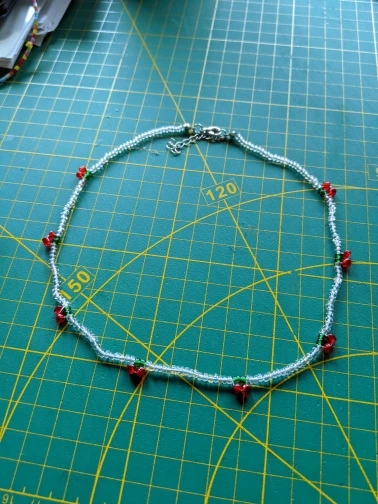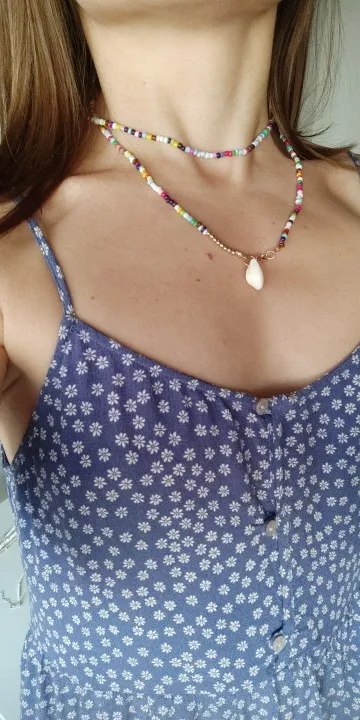 Чокер не понравился, внешне милый ,но выполнен на жесткой леске,из-за этого на шее колом,не лежит