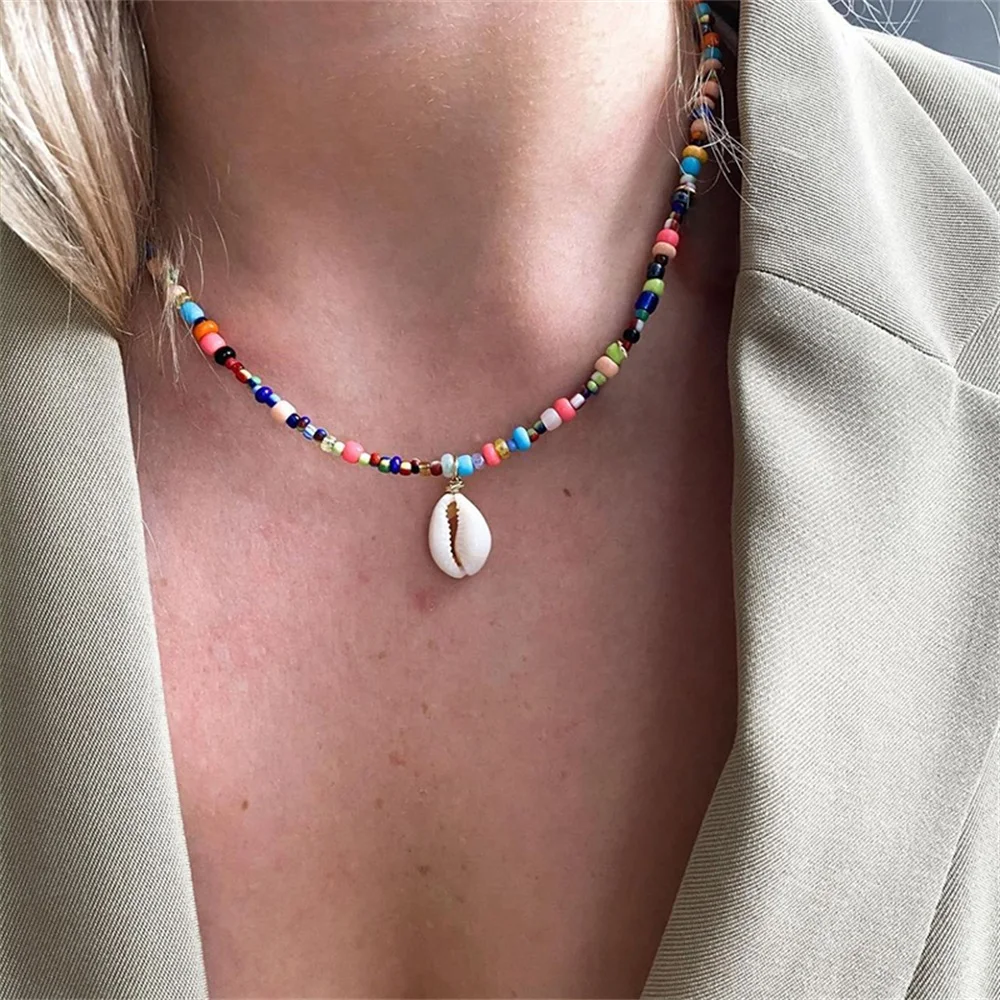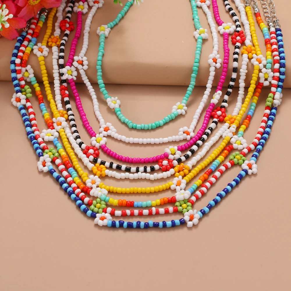 FNIO Y2K, стильное ожерелье-чокер с цветными бусинами и жемчугом, богемное ожерелье с цветком, ювелирные изделия для женщин 2021