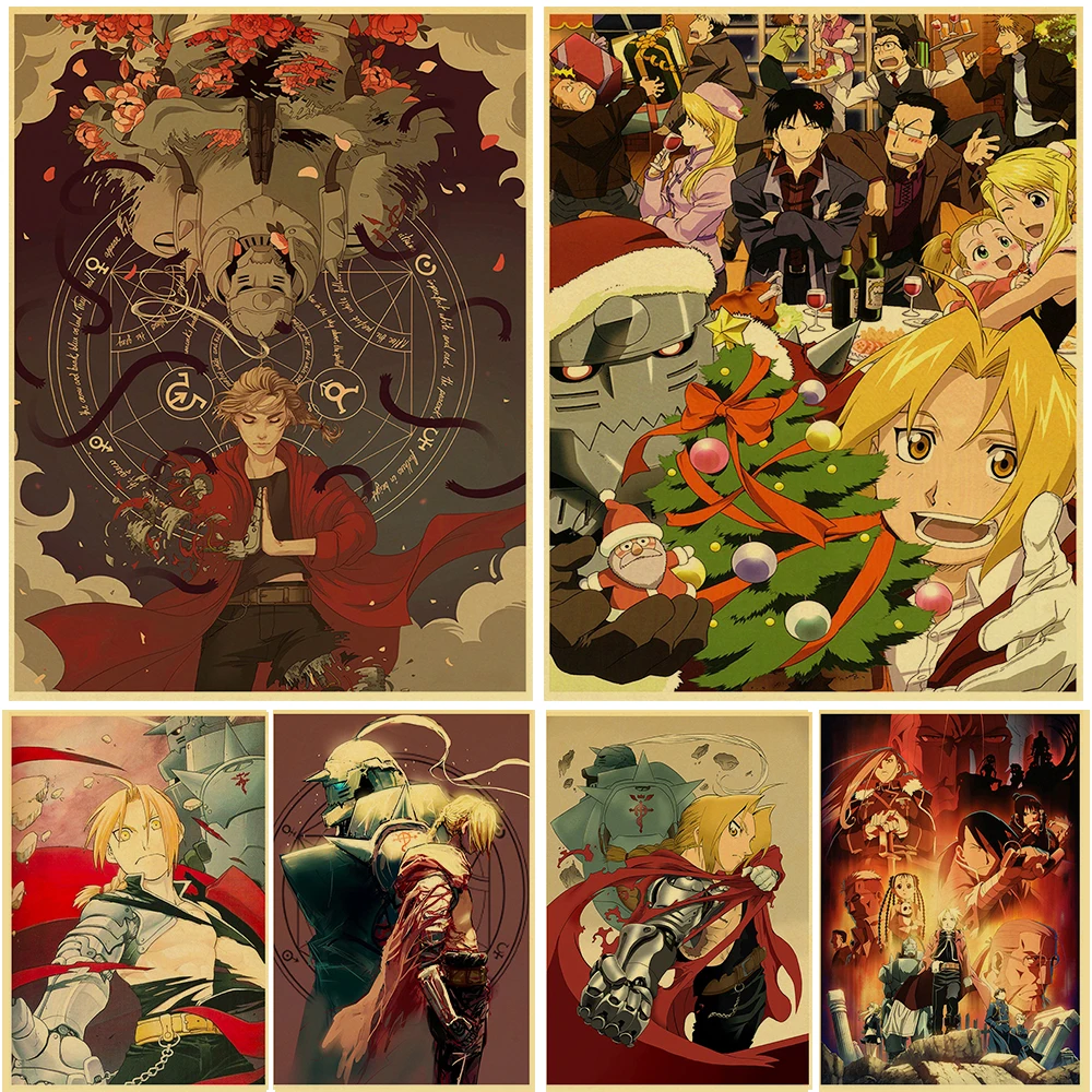Купите три и получите одну бесплатную анимацию, цельнометаллический постер с персонажем алхимика, крафт-бумага, Ретро Декор для спальни, таверны, спальни