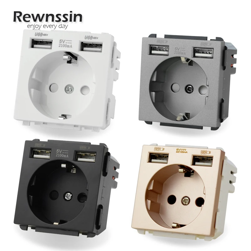 Силовые Розетки Rewnssin 16 А, функциональный ключевой модуль, розетка европейского стандарта с двумя USB-портами 2,1 А, настенные электрические розетки сделай сам с бесплатной комбинацией