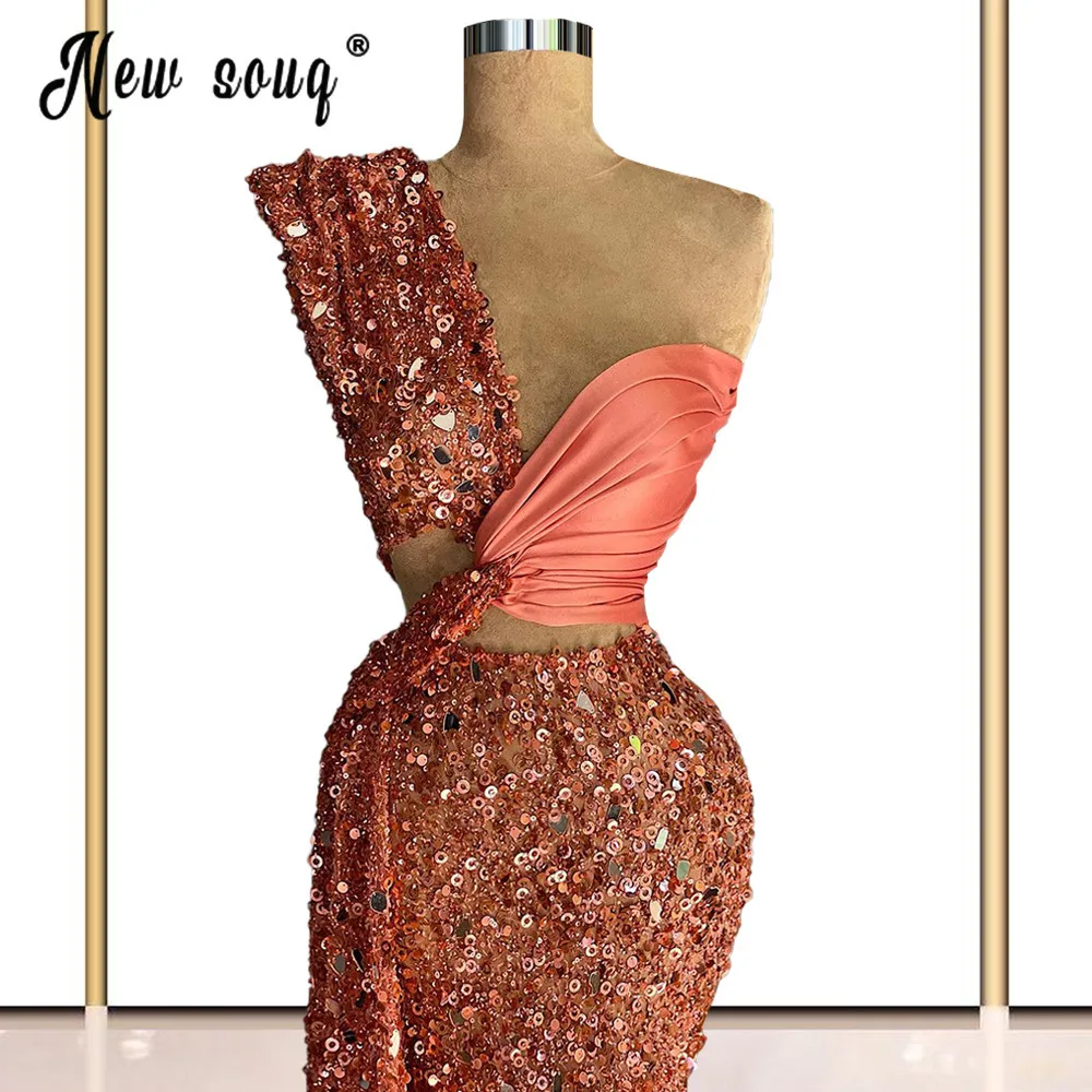 Сексуальное платье на одно плечо для выпускного вечера, женское платье сорие 2021, вечерние платья с бисером, вечернее платье русалки, оранжевые коктейльные платья, женское