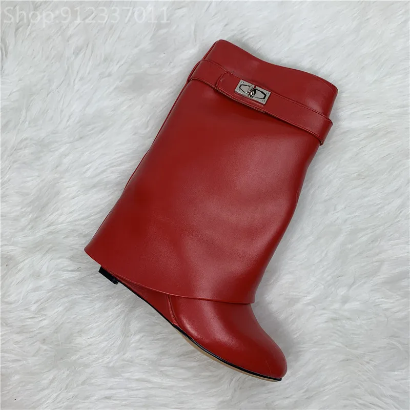 Женские сапоги на танкетке Shark Lock, ботфорты из натуральной кожи...