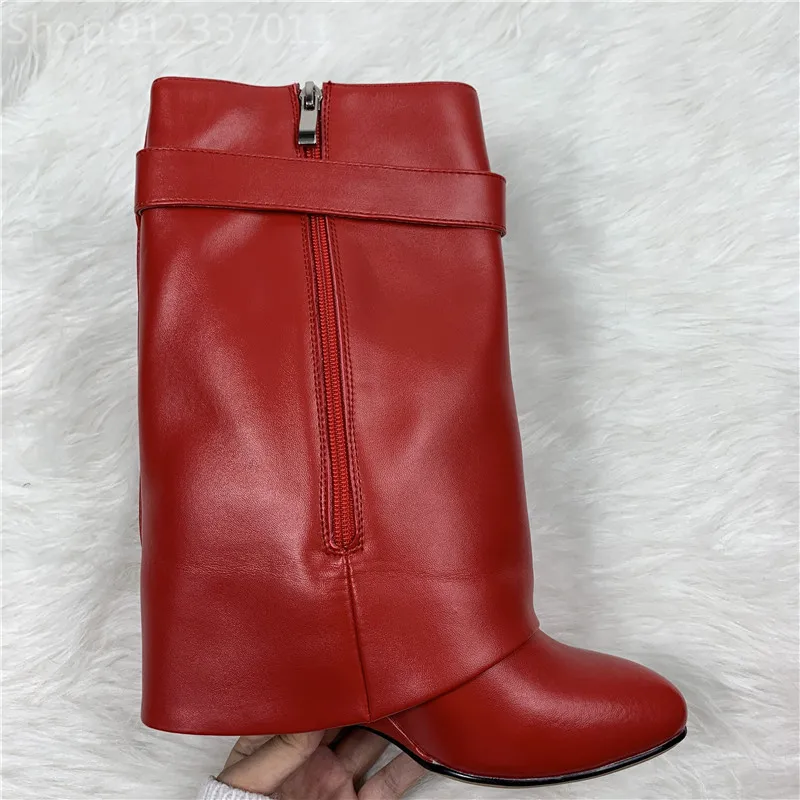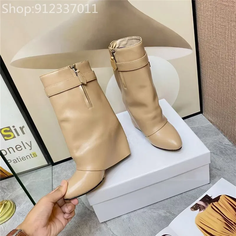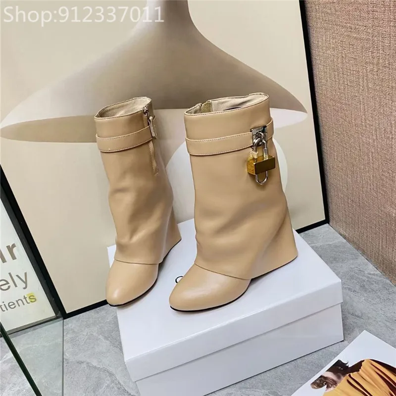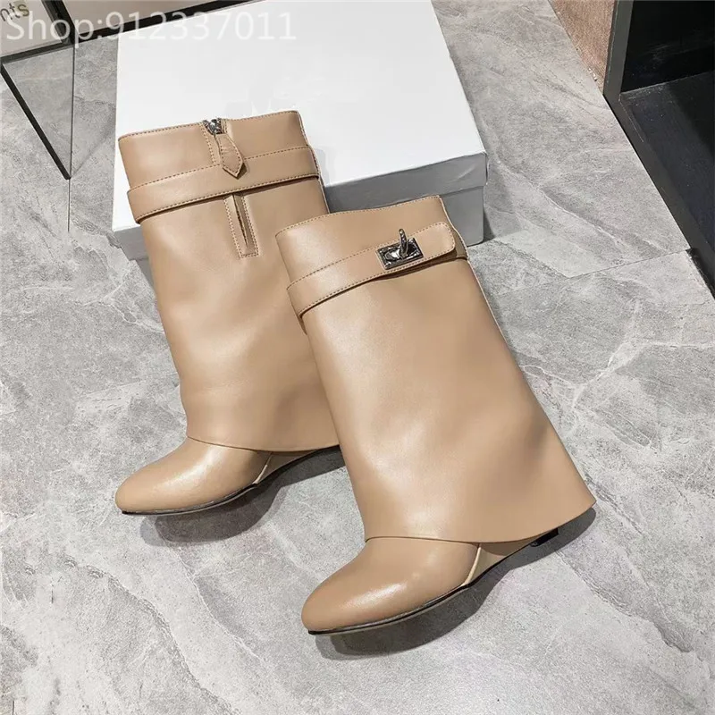 Женские сапоги на танкетке с металлическим замком Акула, ботфорты с...