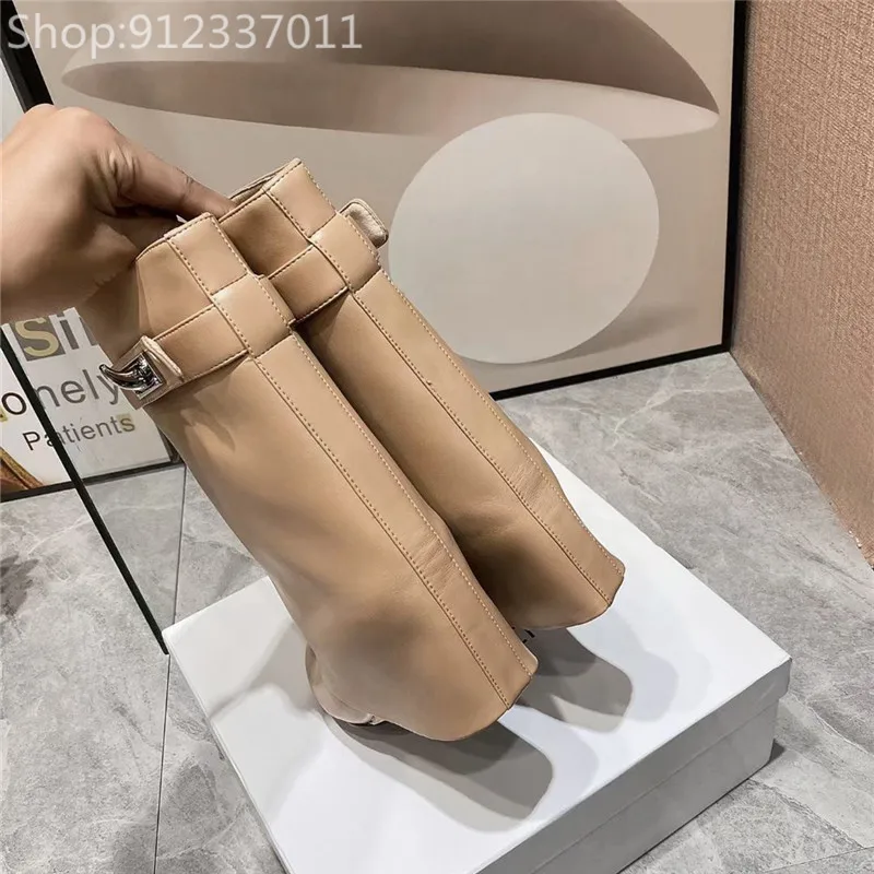 Новые зимние высокие сапоги до колена с металлическим замком акулы,...