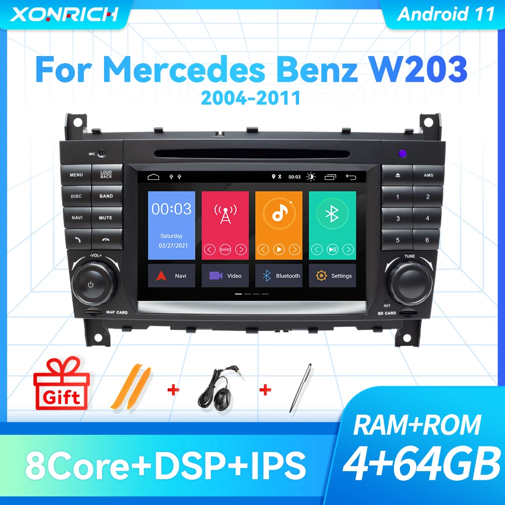 Автомагнитола 2DIN, Android 11, DVD, мультимедийная навигация, радио для MercedesBenz W203 W209 W219 A-Class A160 C-Class C200 CLK200, GPS, стерео