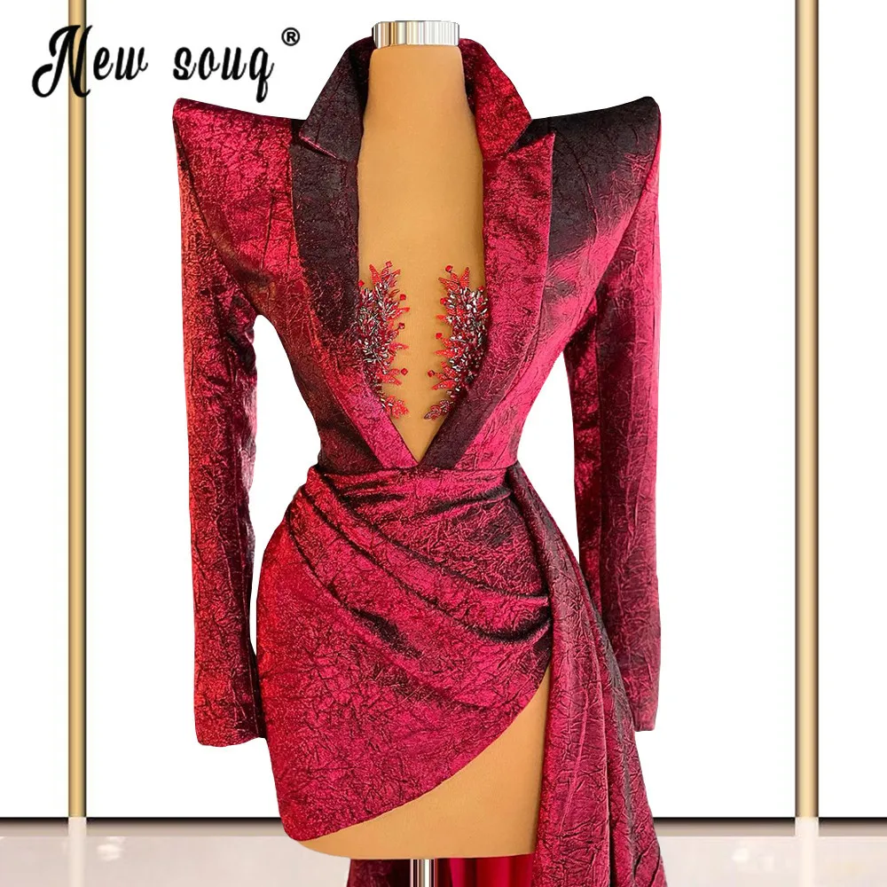 Женское коктейльное платье, короткое платье-Русалка с рукавом винтажный буф, с бисером, Кристаллами, для выпускного вечера