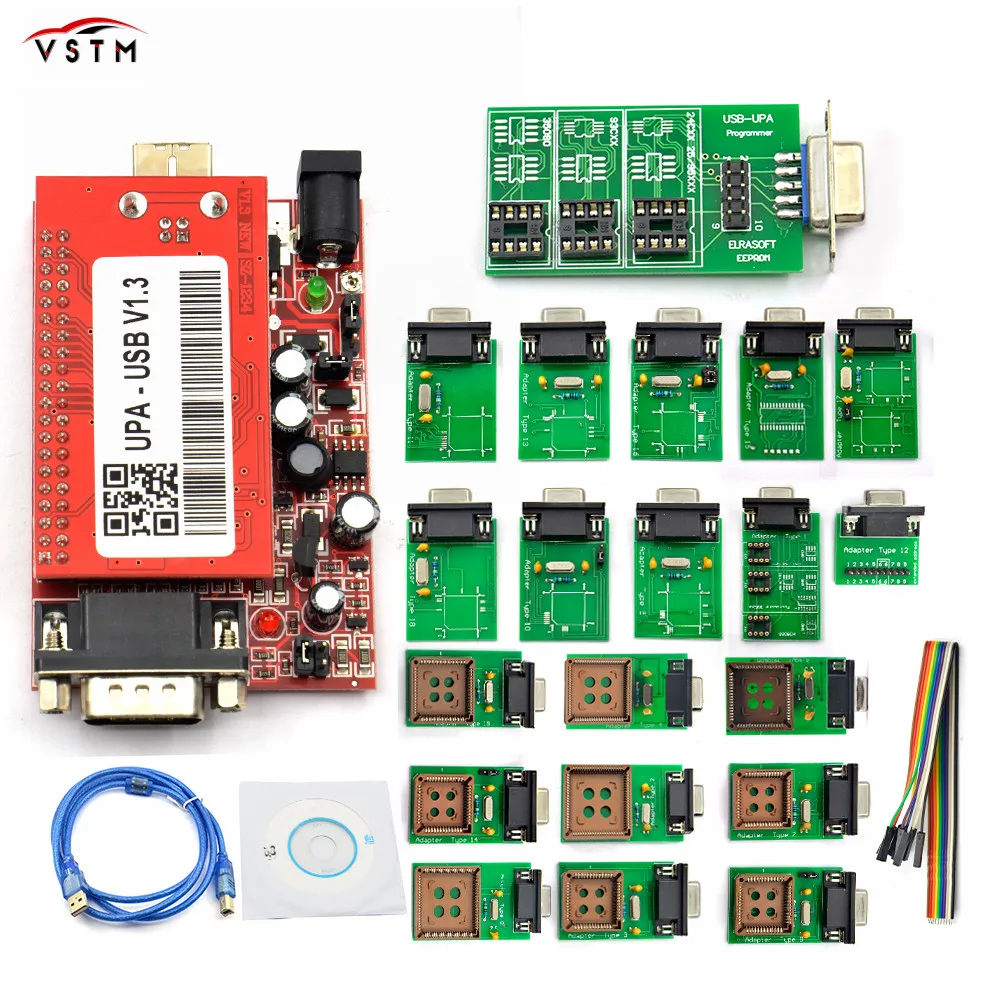 Диагностический инструмент OBD2 с полными адаптерами V1.3 ECU, USB-программатор UPAUSB, лучшее качество с F