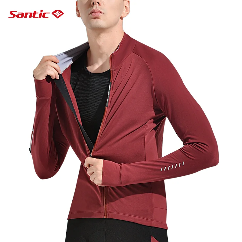 Мужская трикотажная спортивная одежда Santic, зимняя теплая флисовая куртка с длинным рукавом, пальто для горного и шоссейного велосипеда, спортивная одежда азиатского размера
