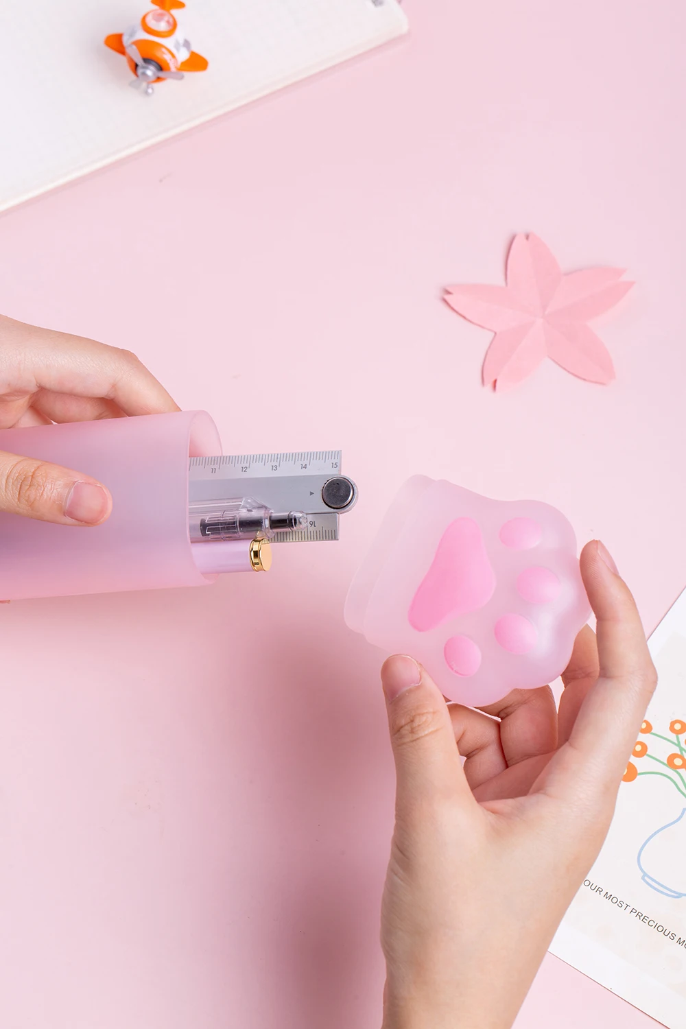 Чехол для карандашей, прозрачный, в виде кошачьей лапы