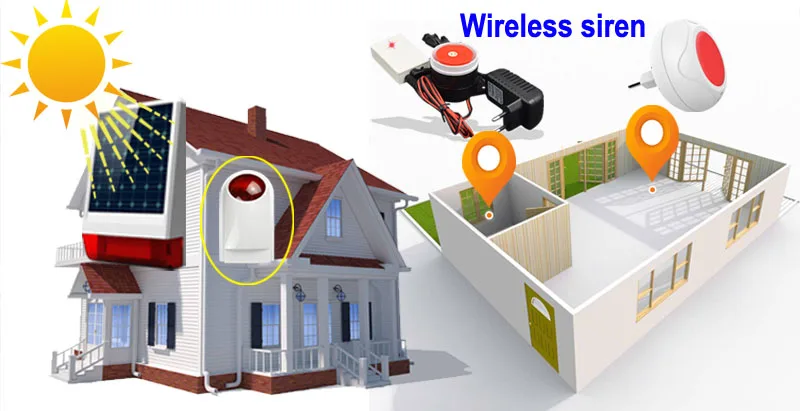 Беспроводная сирена сделает систему более мощной, вам не нужен кабель. Также вы можете выбрать солнечную беспроводную Сирена.