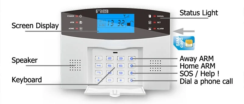 Функция Wifi GSM сигнализации M2B? 7 проводных и 99 беспроводных зон защиты; ЖК-экран с отображением времени; Голосовая Подсказка для всех групп операций S3 своевременной руки и снятия; Может хранить 6 телефонных номеров: при тревоге, Системы сделают сигнал тревоги звонок на эти номера автоматически; Можно хранить 3 sms-номеров: при тревоге, Системы будет отправить Тревожные SMS автоматически; 10-секундный автоматическое сообщение микроме-в искусственный интеллигентая (ый) цифровой голосовой диктор; встроенное искусственное интеллектуальное сообщение на английском языке; Пользователи могут совершать звонки с помощью клавиатуры на панели сигнализации, как и телефон; Функция управления одним ключом: внешний рычаг, домашний рычаг, пульт дистанционного управления; arm/disarm по SMS или вызовам, пультам дистанционного управления, пожару, Газу, двери, Холлу, окну, балкон и пограничные места сигнализации; В режиме реального времени, задержки, 24 часа в сутки, обход зон обороны функция программирования Беспроводной кодирование: легко добавить дополнительные Беспроводной accessoriesRemote рычаг управлениия, оружие, монитор, и внутренней связи по телефону; sms-оповещение о сбое питания или восстановленном аккумуляторе AAA NI-HI: оповещение при отключении питания