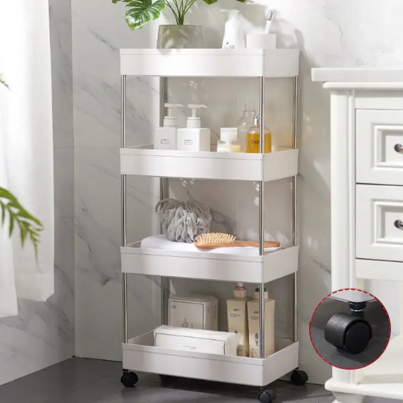Тележка для хранения, 3 4 уровня, тонкая, передвижная полка, органайзер, выдвижная полка для кухни, ванной
