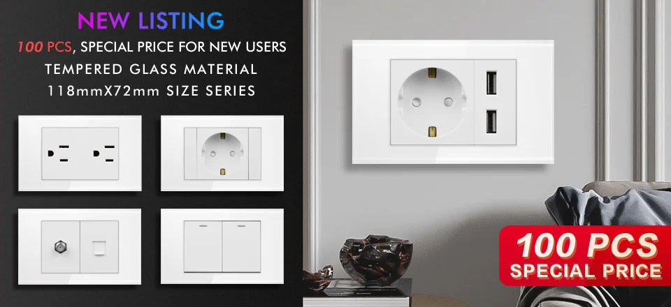 Настенная розетка с выключателем, 13 а, 250 В, 146 мм * 86 мм