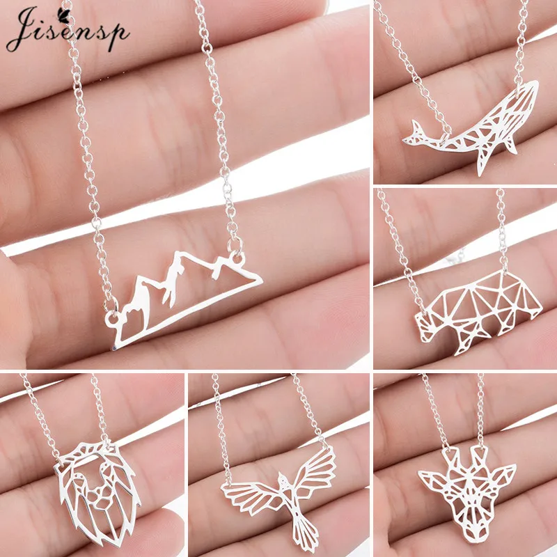Женские Ювелирные изделия, из нержавеющей стали ожерелья в форме гор, с изображением Кита, жирафа, Льва, Шейное колье с подвеской