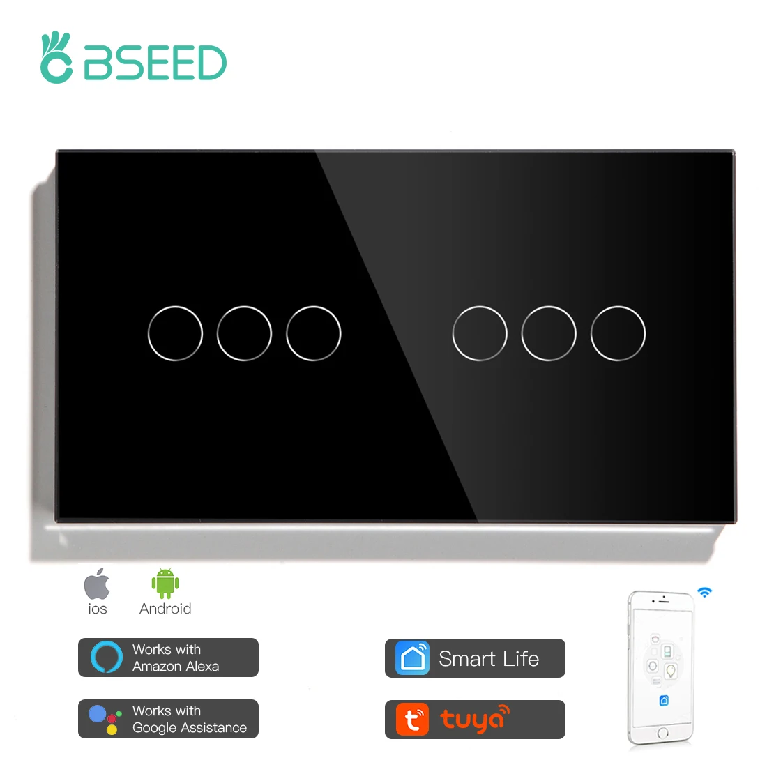 Умный сенсорный выключатель Bseed EU с Wi-Fi, 6 клавиш, 157 мм