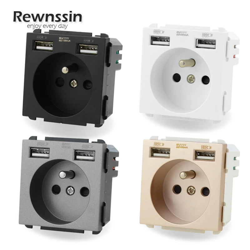 Комбинированная розетка rewnшпиль, размер 52 х 52 мм, цвет белыйчерныйсеребристыйзолотой