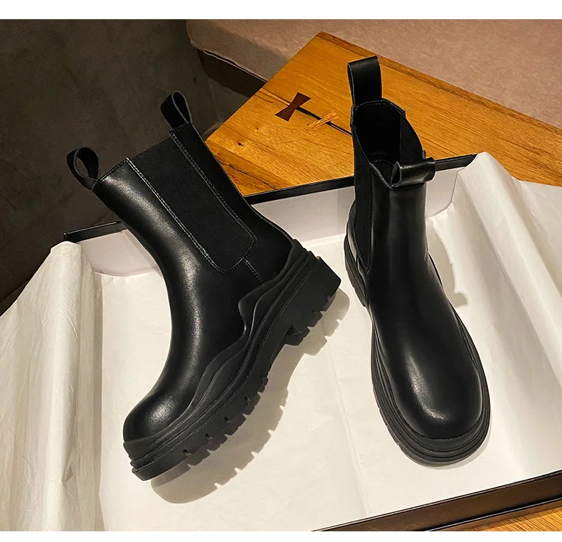 Женские ботильоны челси из натуральной кожи, на толстой подошве