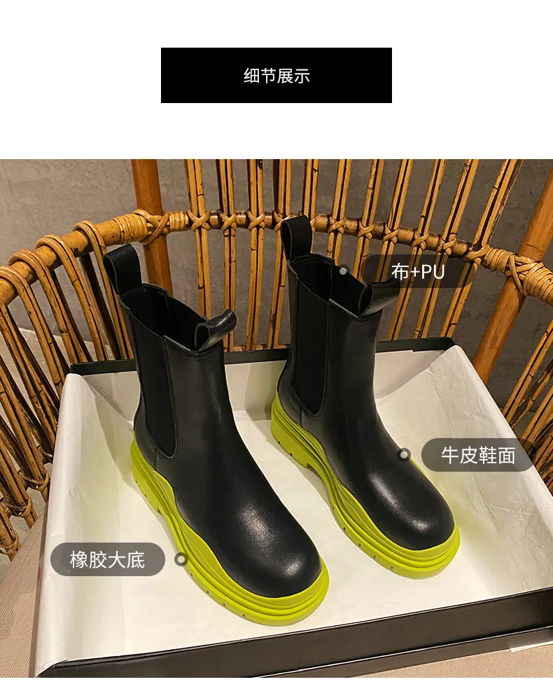 Женские кожаные ботинки челси, красные ботинки на толстой подошве, с авокадо, Осень-зима 2021