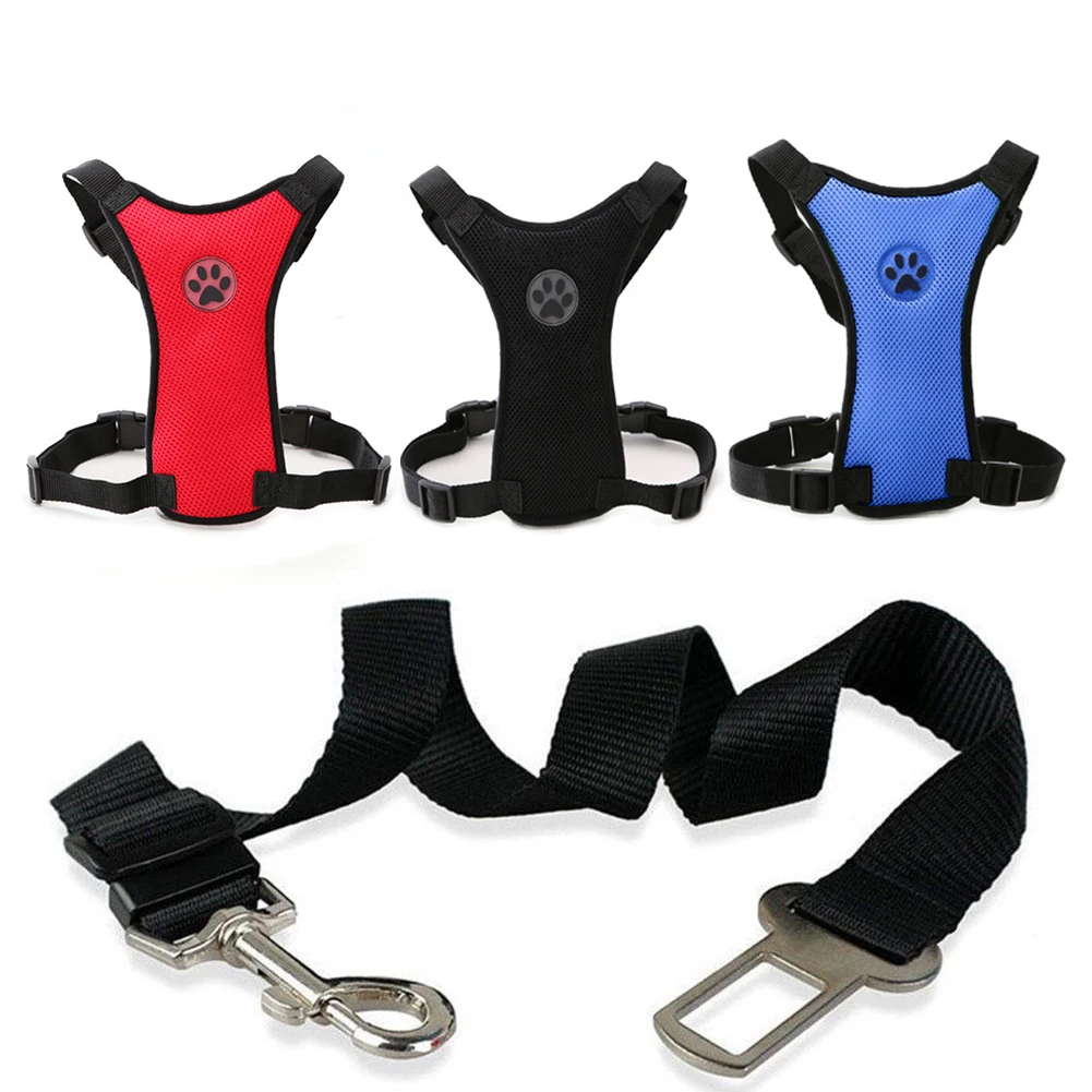 Нагрудный ремень для собак, регулируемый дышащий Многофункциональный поводок, сетчатые шлейки, ремень безопасности для автомобиля, товары для домашних животных