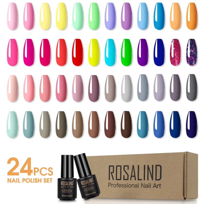 Блестящий Гель-лак ROSALIND 7 мл, набор для ногтей, Полупостоянный лак для ногтей, гибридные лаки для дизайна ногтей, маникюр, верхнее и Базовое покрытие