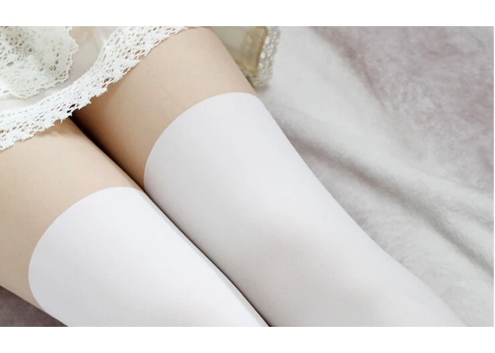 Белые чулки выше колена, соблазнительные эластичные нейлоновые чулк...