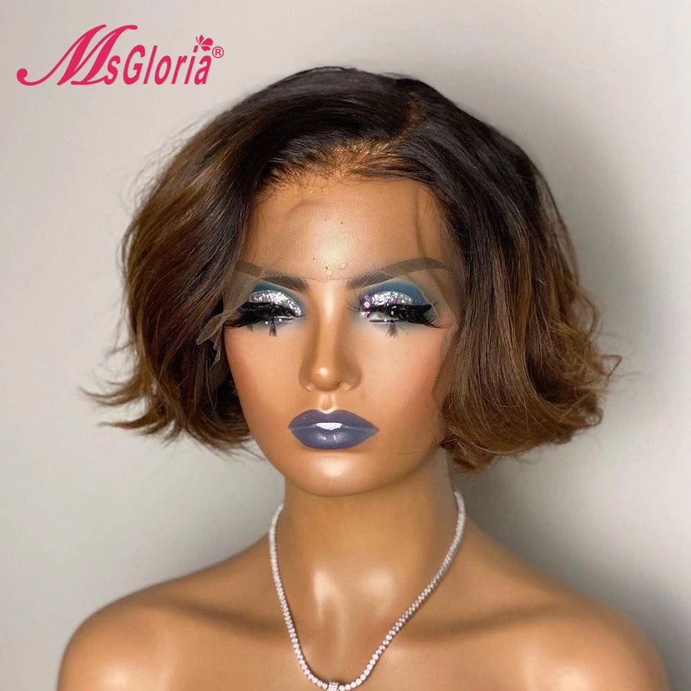 200 плотность шелковая основа 4x4 закрытие парик короткие волнистые 13x4 кружева передние парики для Для женщин бразильский эффектом деграде (переход от темного к коричневый Цветной парики из натуральных волос