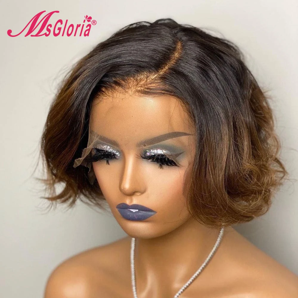 Парик на шелковой основе плотностью 200, парик с застежкой 4x4, короткие волнистые парики 13x4 Для Женщин, бразильские парики из человеческих волос коричневого цвета с эффектом омбре