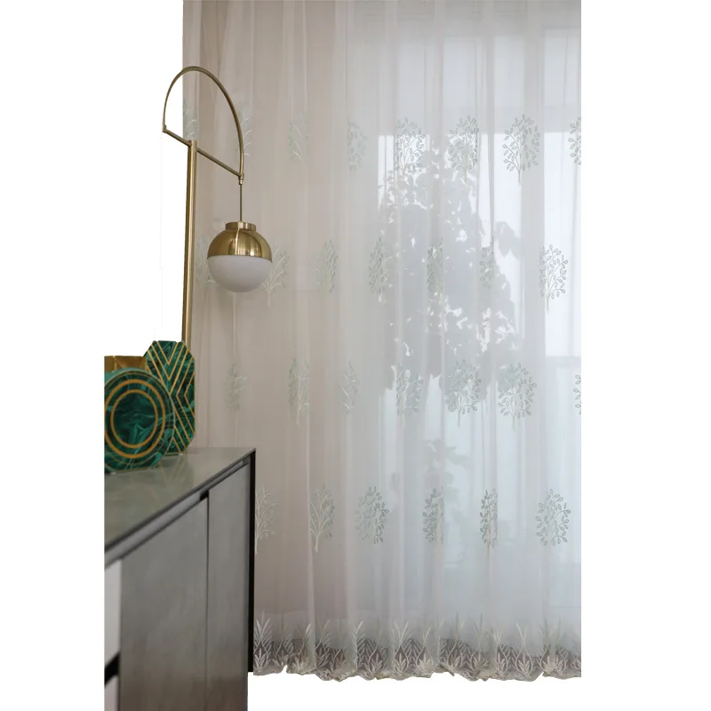 Тюлевые шторы с вышивкой деревьев и зеленых трав для гостиной, штор...