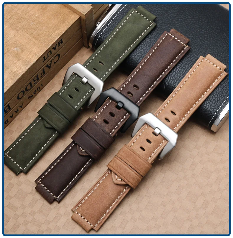 Ремешок кожаный выпуклый модифицированный для часов, цепочка для женских часов, ремешок для часов 5608 дюйма, мужской ремешок для часов, ловушка для часов 24*16 мм