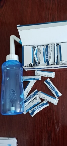Доставка 1.5 месяца. В пачке 60 пакетиков, на вкус подсоленая вода получается, купил сразу в комплекте с промывкой на 0.5 литра, проверил как промывает нос, все отлично, очень удобно, быстро и безболезненно. Носовые пазухи после промывания не щиплет, в носу не свербит.